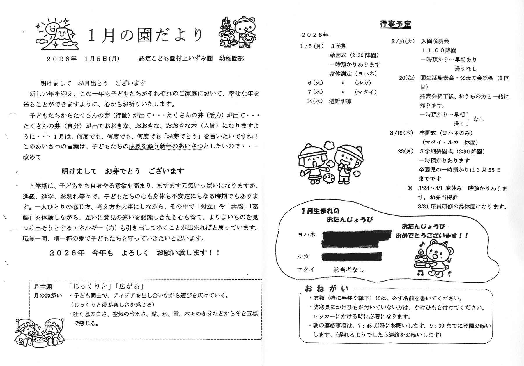 HOME > 記事一覧 > お知らせ > 1月の園だより
