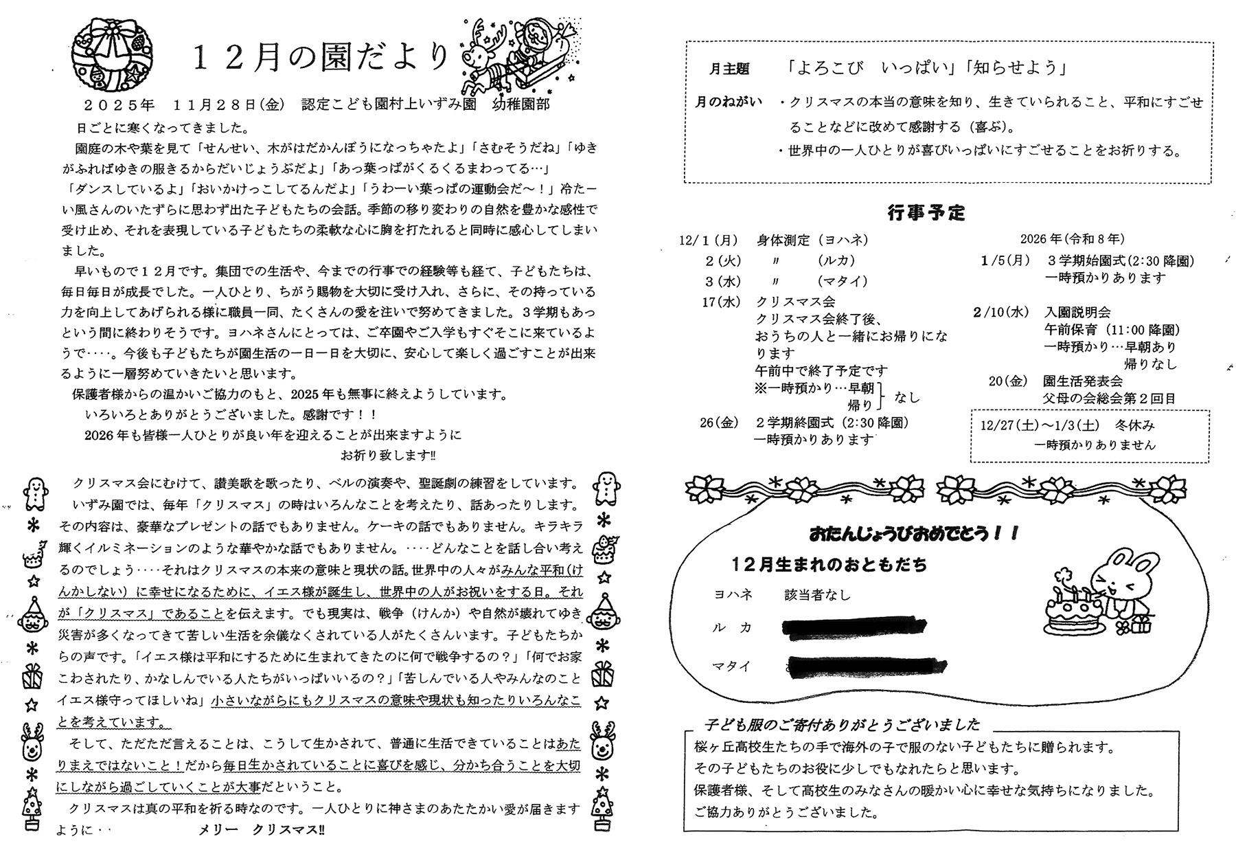 12月の園だより