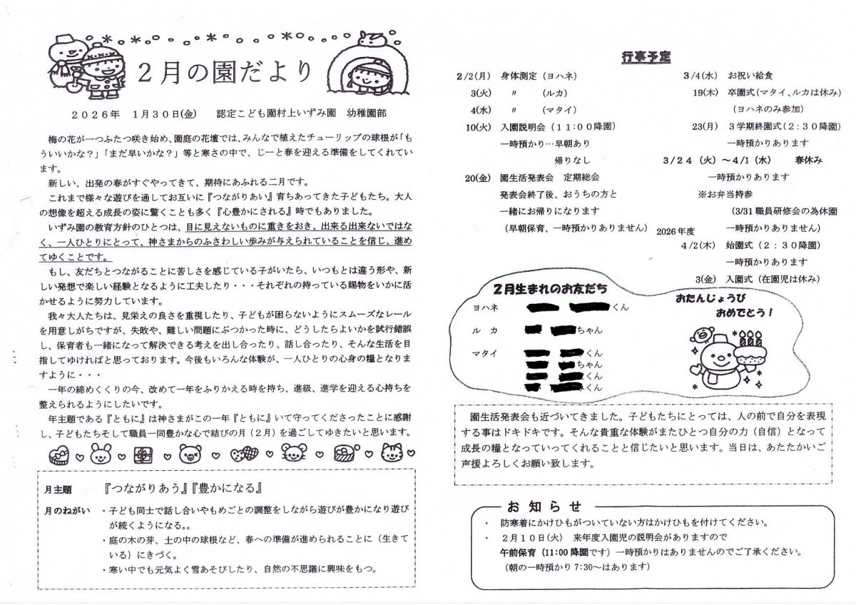 2月の園だより